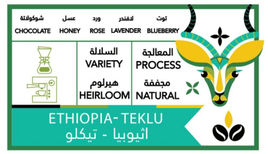 قهوة تيكلو من إثيوبيا تتميز بنكهات التوت واللافندر والورد والعسل مع إيحاءات الشوكولاتة تتم معالجتها بالطريقة المجففة باستخدام سلالة هيرلوم مما يضفي عليها نكهات معقدة ومميزة يمكن تحضيرها باستخدام أدوات التقطير أو كإسبريسو لتقديم تجربة قهوة فريدة ومتكاملة .