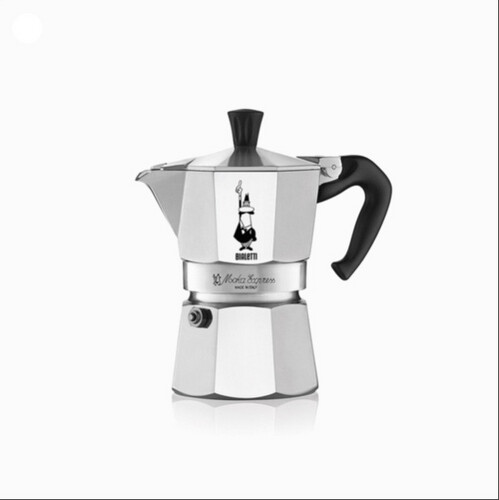 ماكينة موكا لتحضير الإسبريسو – تسع 3 أكواب، باللون الفضي الأنيق. مثالية لعشاق القهوة الإيطالية الأصيلة، تجمع بين التصميم الكلاسيكي والأداء العملي